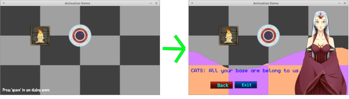 replaceScene() changes current scene with a new onepopScene()/pushScene() works with some kind of stack of scenes. push freezes the current scene, adds it to the stack and then starts the new one. On the other side, pop deletes the current scene and takes another one from the stack.popToRootScene() and popToSceneStackLevel(int level) allows switching to root or arbitrary scene.Anyway, the new scene completely redraws everything that was on the screen before it. In most cases this behavior is good, but there are some exceptions. Let’s say you want to put the game on pause or display some message. In order to make this delay more obvious for the player it will be better to show the new scene over some content from the old one.